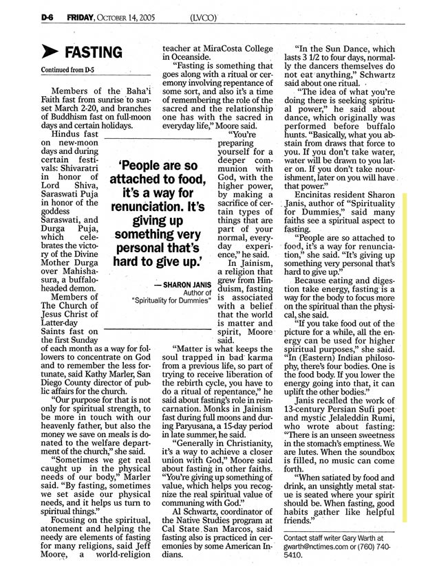 Article about Spiritual Fasting including an Interview with Sharon Janis about Spiritual Fasting
